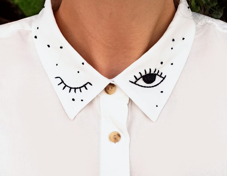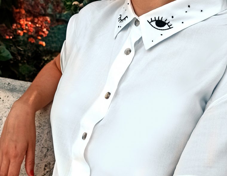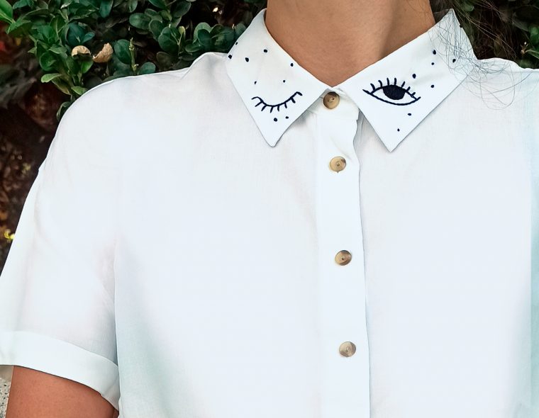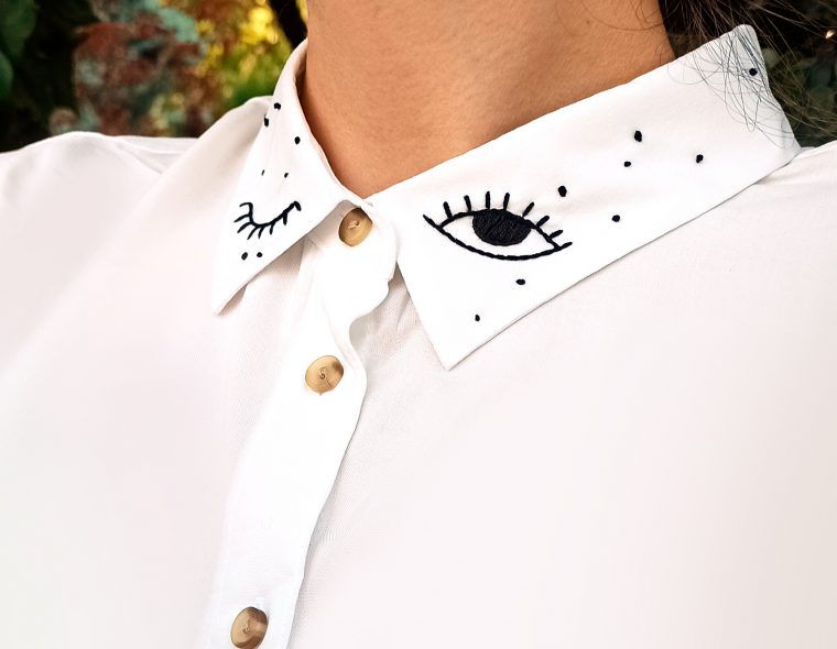 Camisa con cuello bordado. En este caso ojos y estrellas.