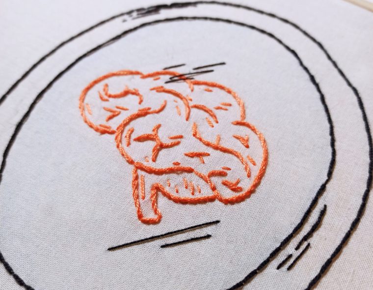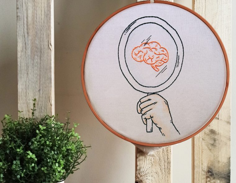 Ilustración bordada con hilo perlé y mouline. Incluye bastidor de madera pintado.