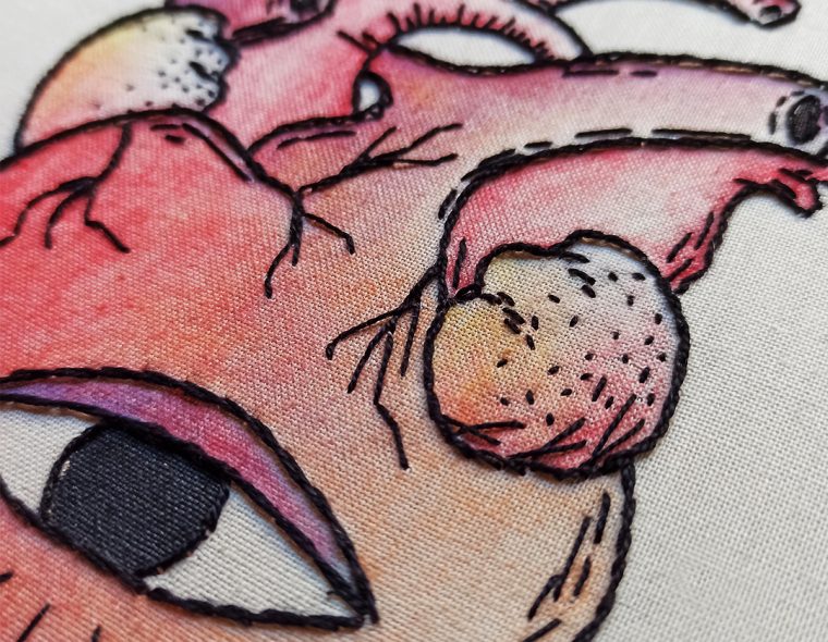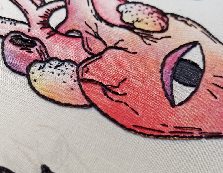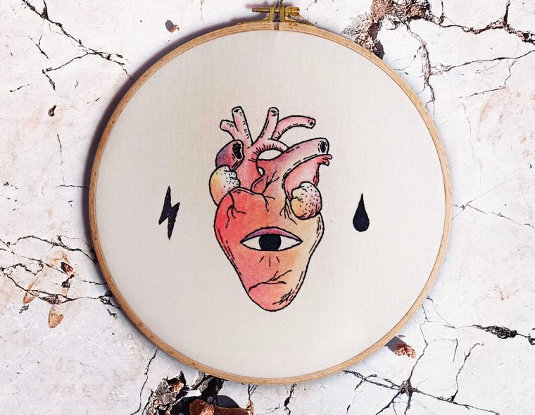 Bordado ilustrado sobre tela de algodón 100%. Incluye bastidor de bambú.
