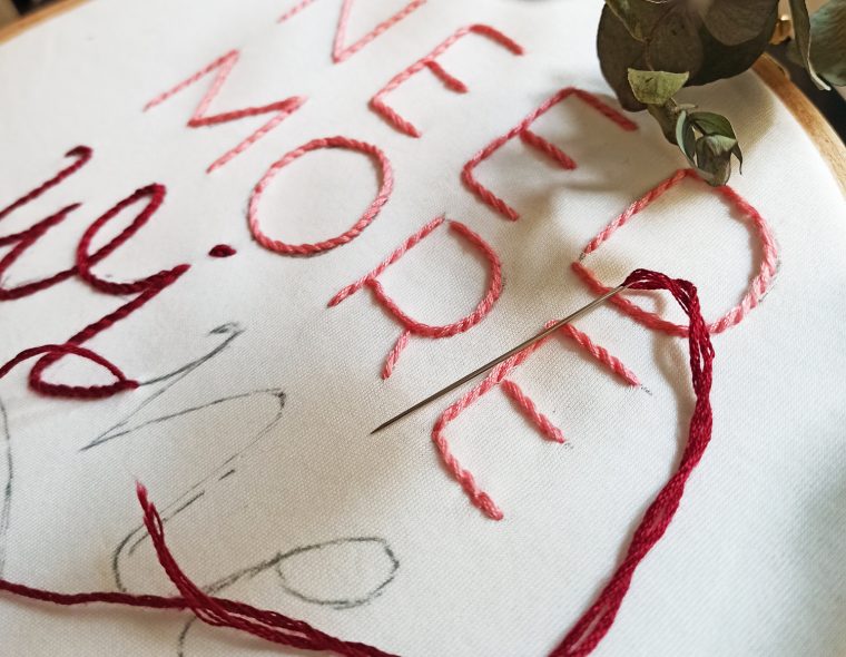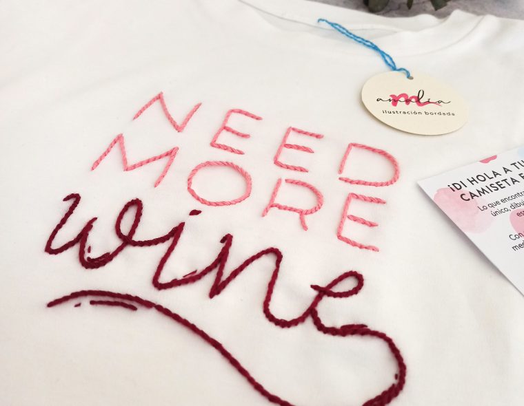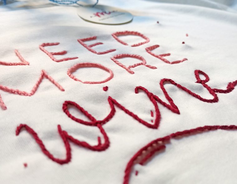 Texto diseñado y bordado a mano sobre camiseta de algodón orgánico 100%.