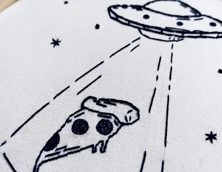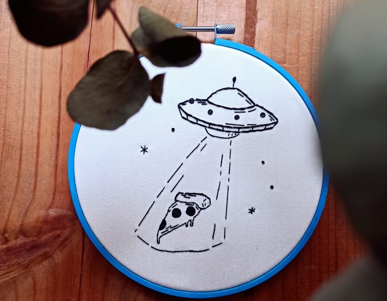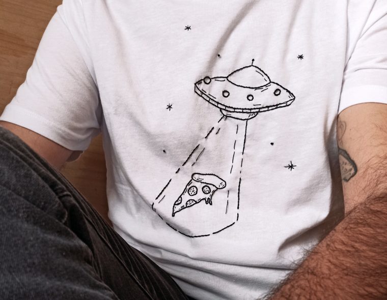 Ilustración diseñada y bordada a mano sobre camiseta de algodón orgánico 100%.